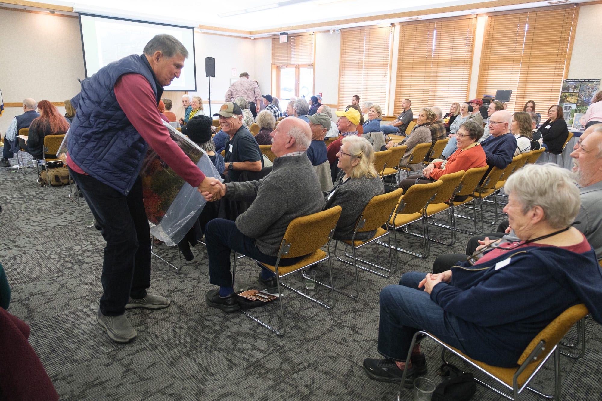 Manchin, who chaired the Natural Resources and Energy Committee, went after Land and Water Conservation Fund money to purchase the canyon from AWP. The effort can down to the wire, Dec. 30, 2024, when Texas Senator Ted Cruz, a Republican, agreed to release a hold on the funds that Manchin, a Democrat, needed to purchase the canyon. During the celebration Oct. 26, 2025, Manchin shared details of his final day in Congress and the negotiations that led to other senators releasing their holds on funds.